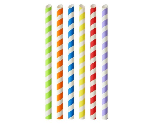 Grube papierowe słomki w różnych kolorach.