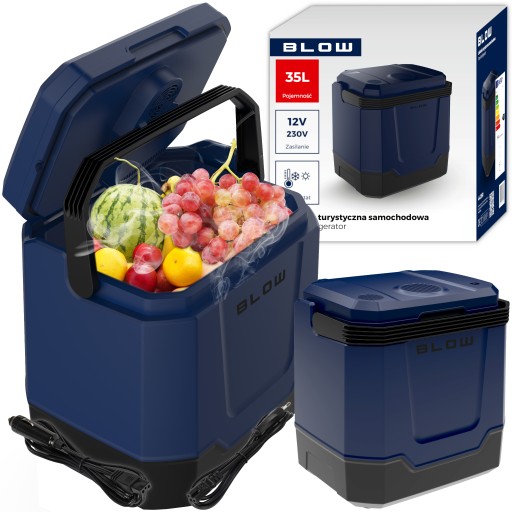 MOCNA CICHA LODÓWKA PRZENOŚNA TURYSTYCZNA SAMOCHODOWA 12V/230V 35L ZESTAW