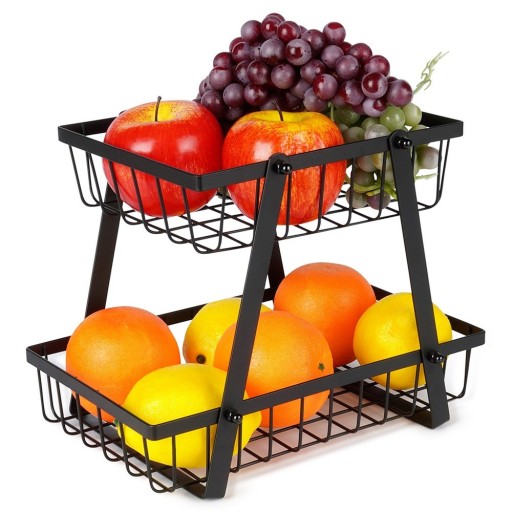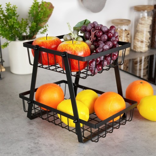 - Dwupoziomowy dla lepszej organizacji - Koszyk posiada dwa poziomy, dzięki czemu ma dużą pojemność. Dodatkowo, posiada otwarte ścianki, które zapewniają odpowiednią cyrkulację powietrza. Dzięki niemu owoce lub warzywa będą pięknie wyeksponowane, a także dłużej zachowają świeżość.