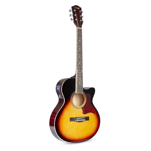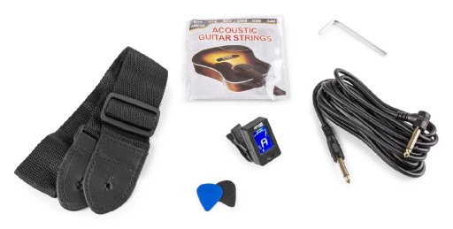Zestaw MAX ShowKit zawiera gitarę elektro-akustyczną ze stalowymi strunami, dedykowany wzmacniacz gitarowy oraz niezbędne akcesoria potrzebne aby rozpocząć swoją przygodę z nauką gry lub występami. Instrument jest wykonany z najlepszych materiałów i dstepny w bardzo przystępnej cenie. Dołączony wzmacniacz Max Amp o mocy 40W wyposażony w potrójna korekcję barwy, przester oraz pokrętło nasycenia przesteru stanowi doskonały punkt wyjścia dla każdego gitarzysty do budowania swojego indywidualnego brzmienia. Zestaw zawiera wytrzymałą nylonową torbę transportową, tuner cyfrowy, kostki, pasek do gitary i zapasowy zestaw strun.