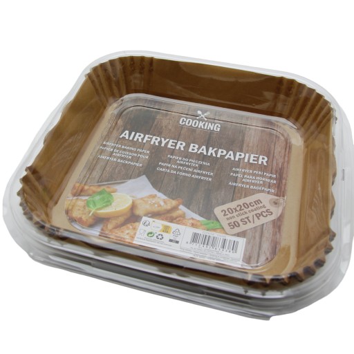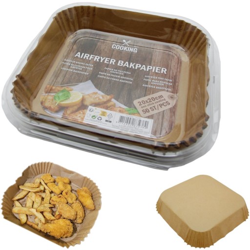 - 50 sztuk wkładów do frytkownicy - Zestaw 50 wkładów do frytkownicy Air Fryer w kwadratowym kształcie, z karbowanymi brzegami. Każdy wkład ma wymiary 23 x 23 x 4,5 cm. Wkłady są lekki i łatwe w użyciu.
