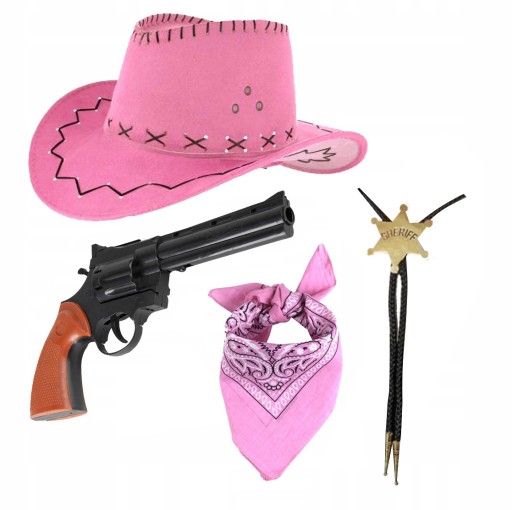 НАряд НАСТАВНИКА РОЗОВАЯ ДЕТСКАЯ ШЛЯПА БАНДАМА РЕВОЛЬВЕР + ОЖЕРЕЛЬЕ ШЕРИФА