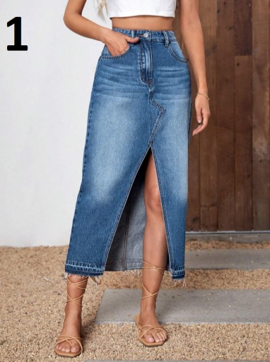 SPÓDNICA JEANSOWA DŁUGA ROZCIĘCIE JEANS KOLORY