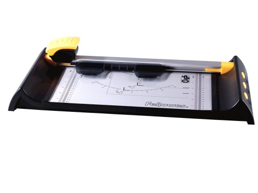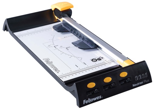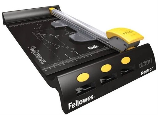 Trymer Fellowes Neutron A4 Plus. Trymer przeznaczony do użytku w małym biurze lub domu do cięcia dokumentów o rozmiarze do A4