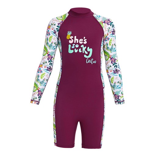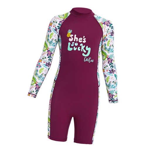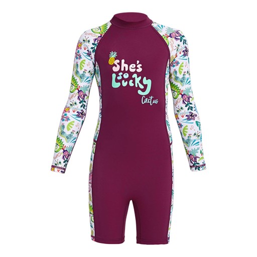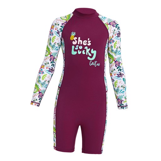 Dziecięcy kombinezon chroniący przed słońcem dziewczęcy strój kąpielowy do pływania na świeżym powietrzu fioletowy, mały