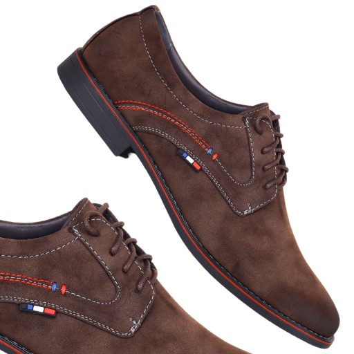 Pantofle męskie w kolorze brązowym. Posiadają one modny wzór, oraz stabilną podeszwę. Sznurowanie umożliwia idealne dopasowanie się obuwia do stopy. Miękka piankowa wkładka zapewnia komfort użytkowania. Prosty klasyczny fason łatwo dopasuje się do wielu stylizacji.