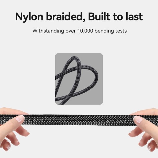 Kabel posiada ponadto nylonowy oplot, który zwiększa jego wytrzymałość i odporność na uszkodzenia mechaniczne, aby kabel mógł służyć Ci długo.