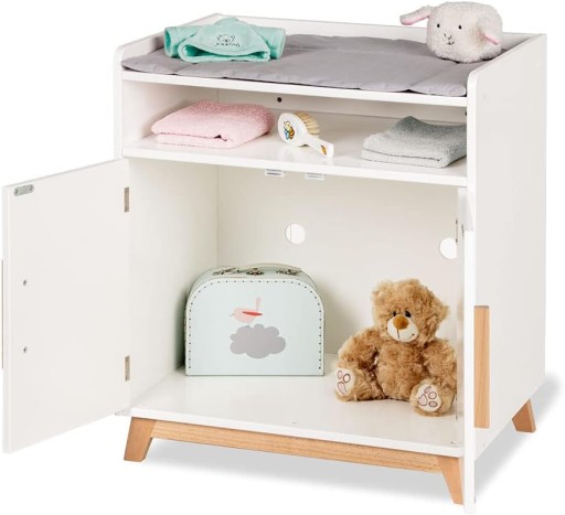 Ze względu na zmieniającą się wysokość 56 cm, przewijak dla lalek w stylu skandynawskim może być używany wyjątkowo komfortowo. Dwoje drzwi i jedna otwarta komora sprawiają, że przewijak dla lalek wygląda jak prawdziwy przewijak