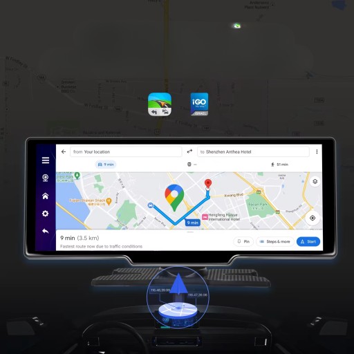 Radio posiada wbudowaną nawigację Google Maps z mapami całego świata.