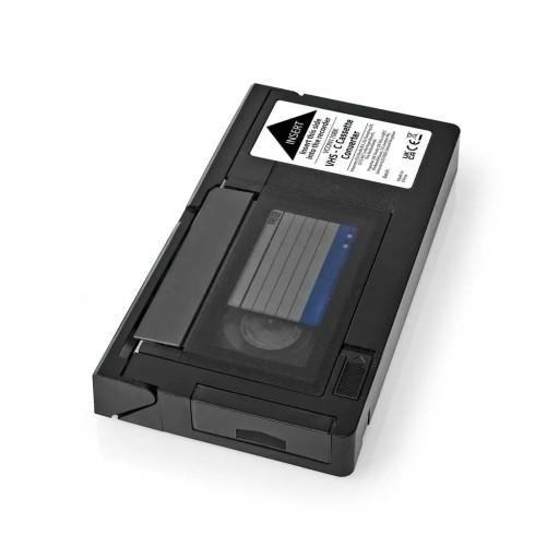 Włóż taśmę VHS-C do konwertera kaset VHS-C Nedis VCON110BK, aby nagrać lub obejrzeć ją na standardowym magnetowidzie VHS. Włóż baterię AA (brak w zestawie), aby automatycznie otworzyć przód i załadować lub wyładować taśmę. Należy pamiętać, że taśmy 8 mm nie są kompatybilne z VCON110BK. Można używać wyłącznie tych opatrzonych logo VHS-C.Podczas używania VCON110BK w połączeniu z odtwarzaczem VHS i kasetą VHS-C należy pamiętać o następujących informacjach i środkach ostrożności: • Z biegiem lat na odtwarzaczu VHS i taśmie VHS-C nagromadzi się kurz i tłuszcz, które nie zawsze są widoczne gołym okiem, co może spowodować uszkodzenie włożonych taśm lub zacięcie magnetofonu przed użyciem. Sugerujemy użycie środka czyszczącego VHS do Twojego sprzętu. • Przed włożeniem taśmy VHS-C sprawdź, czy taśma VHS-C nie jest zaprogramowana. Jeśli tak, możesz zmniejszyć naprężenie taśmy, odwijając główne koło zębate taśmy o ¼ obrotu (90 stopni). • Staraj się korzystać wyłącznie z funkcji normalnego odtwarzania odtwarzacza VHS i spróbuj jeśli to możliwe, unikaj korzystania z funkcji szybkiego przewijania do przodu lub do tyłu. Zapobiegnie to niepotrzebnemu obciążeniu kasety VHS-C.Informacje dodatkowe: Przy pierwszym włożeniu taśmy. Najpierw przewiń taśmę całkowicie do przodu, a następnie całkowicie do tyłu przed naciśnięcie przycisku odtwarzania na magnetowidzie