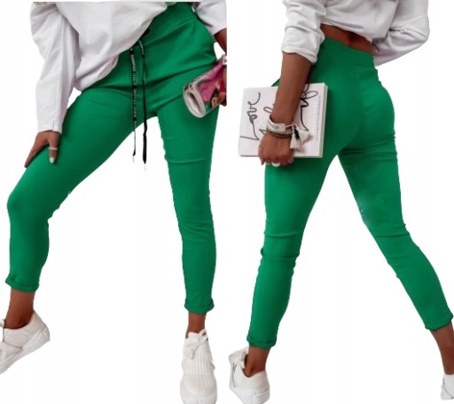 Świetne połączeniu ze szpilkami, dzięki swojej uniwersalności, pasują niemal do każdej stylizacji. Elastyczny materiał podkreśla kobiecą sylwetkę. Spodnie są dopasowane, rozciągają się. Podkreśl swoje kobiece kształty