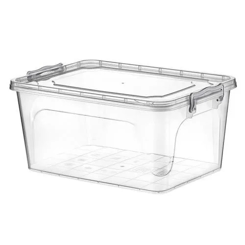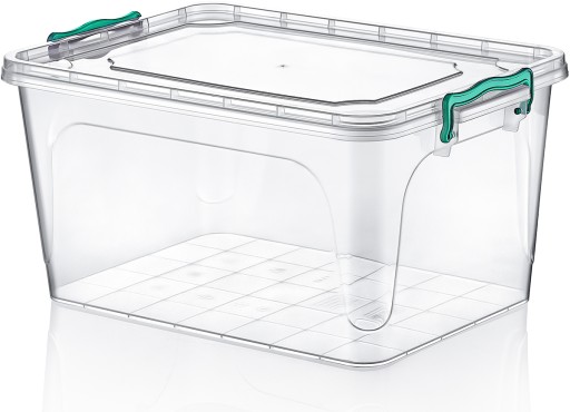 Pojemnik został wykonany z solidnego tworzywa, posiada szczelną przykrywkę zamykaną na klipsy.