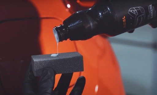 1. Rozprowadź równomiernie niewielką ilość produktu za pomocą ADBL Foamburger bądź ADBL One Shot Tire Pad na oczyszczonym, plastikowym elemencie zewnętrznym.