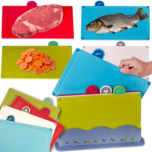 Zestaw 4 desek do krojenia to niezbędne narzędzie, które usprawni proces przygotowywania potraw. Każda deska dedykowana jest do konkretnej grupy produktów, co ułatwia segregację i zapobiega przenoszeniu bakterii.