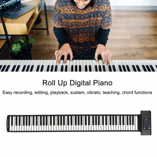 1. Uniwersalny w użyciu: przenośne zwijane pianino dla wszystkich grup wiekowych; z 88 klawiszami (A1-C9) standardowe pianino; z funkcją Bluetooth MIDI do połączenia APP.