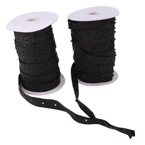 Może być szeroko stosowany w bieliźnie, płaszczach, spodniach sportowych, spodniach dziecięcych i innych Zapinanie pasków z / bielizny, można zabrać na błyskawiczny Idealny do poszwy na kołdrę, w każdym razie, jest to przedmiot uniwersalny, zrób wszystko DIY Rozmiar: szerokość: 19 mm, odległość zatrzasku: 17 mm, zatrzaski Dia8 mm Długość: 50 jardów / 150 stóp Materiał: Żywica