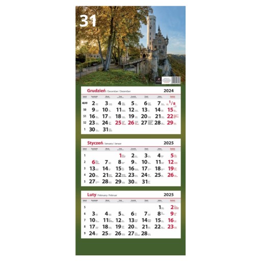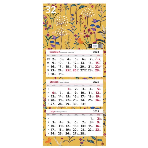 - Kalendarz trójdzielny 2025 rok - 1 sztuka