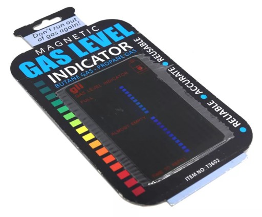 Kompaktowy wskaźnik paliwa dedykowany do butli z gazem skroplonym (propan-butan). Produkt wykorzystuje pomiar temperatury butli do wskazania pozostałej ilości gazu. Wystarczy zaczepić go w dole butli za pomocą magnesu w tylnej części. Nie wymaga żadnych dodatkowych źródeł zasilania ani specjalnego przygotowania, doskonale sprawdzi się więc na biwaku czy campingu.