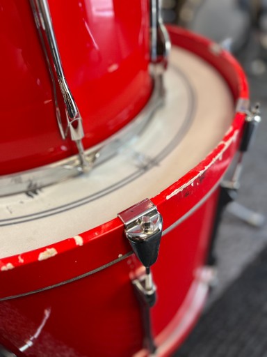 Elementy zestawu zostały zweryfikowane i są oryginalne. Zdecydowaliśmy się zachować rzeczywiste otarcia i obicia instrumentu na części obręczy bębna basowego aby zachować oryginalność.