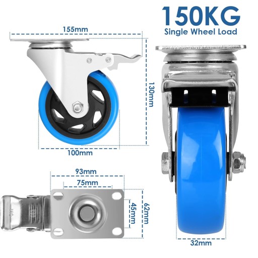 Hamulce: Im cięższe jest obciążenie, tym większa bezwładność. Każda z 4 wysokowydajnych rolek ma hamulec, a 4 hamulce zapewniają lepsze hamowanie i wyższy współczynnik bezpieczeństwa podczas transportu towarów.