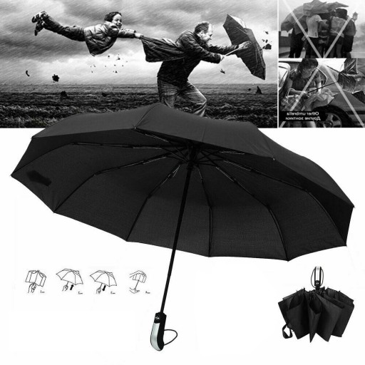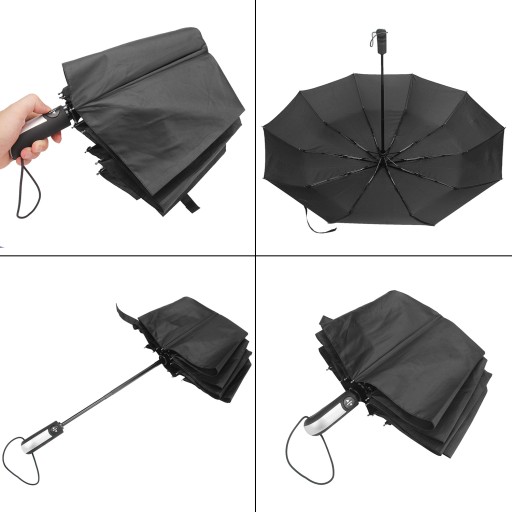 Kompaktowy i przenośny: po złożeniu parasol jest kompaktowy i niewielkich rozmiarów, dzięki czemu z łatwością zmieści się do większości torebek, plecaków, teczek, samochodów itp.