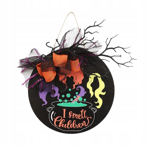 [Wzór] Ten Halloweenowy znak powitalny na drzwi wejściowe z elementami wzoru trzech sióstr czarownic i angielskimi literami, elegancki i stylowy. Ten wiszący znak doda koloru Twojemu domowi na imprezę Halloween i dekoracje nawiedzonego domu.
