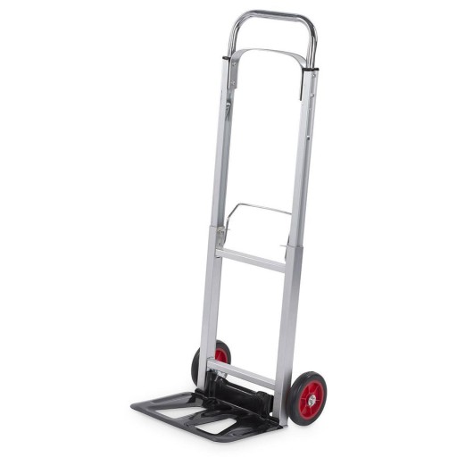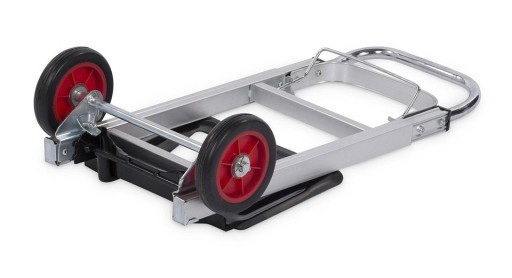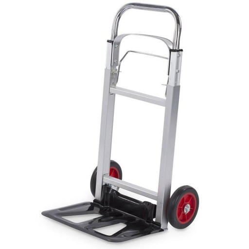 Składany aluminiowy wózek transportowy renomowanej marki GEKO. Przeznaczony do przewożenia różnego rodzaju towarów których waga nie przekracza 90 kg.