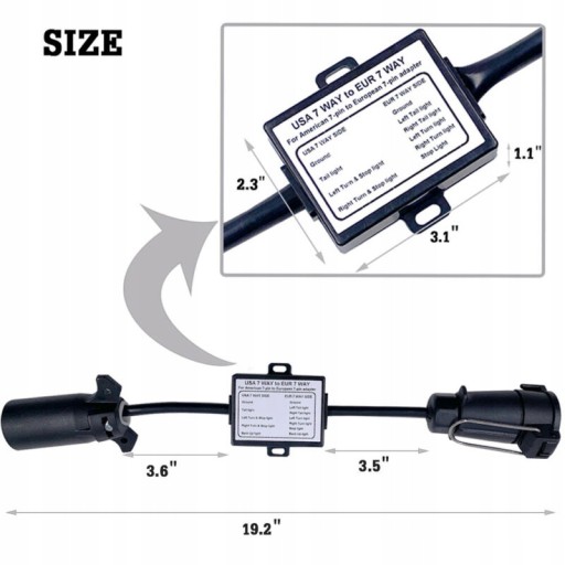 * Jeśli twój amerykański pojazd ma 7-biegunowe gniazdo ostrza RV, a twoja przyczepa Euro ma 7-stykową okrągłą wtyczkę, w której twój amerykański samochód musi oddzielić sygnały stopu i ogona, ten adapter okablowania przyczepy będzie musiał być użyty