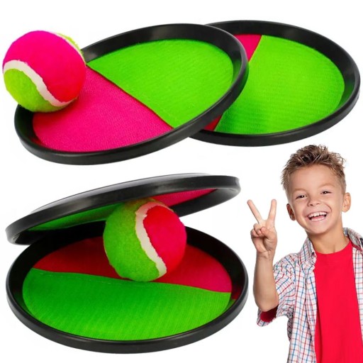 - 2 okrągłe paletki z rzepami – w żywych, przyciągających wzrok kolorach