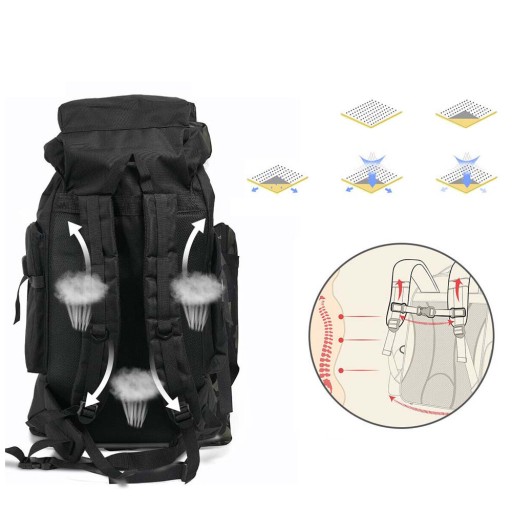 Ten plecak turystyczny jest wykonany z wodoodpornego materiału i trwalszej tkaniny oxford 600D. Ten plecak kempingowy został zaprojektowany z grubymi, wentylowanymi, wyściełanymi paskami na ramiona, które są bardziej oddychające i wygodne. Cały pasek został wzmocniony, więc nie musisz się martwić rozdarciem ani złamaniem.