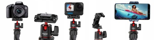 Przemyślana budowa umożliwia montaż wielu urządzeń i akcesoriów fotograficznych. Statyw zakończony został uniwersalnym gwintem 1/4'' oraz składanym uchwytem do smartfona. Po zastosowaniu adaptera sprawdzi się również do kamer sportowych.