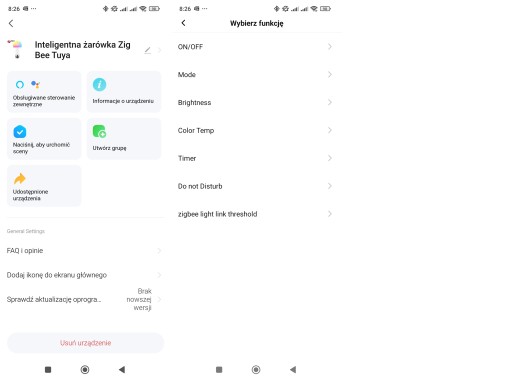 - Sterowanie żarówki za pomocą popularnej aplikacji TUYA Smart