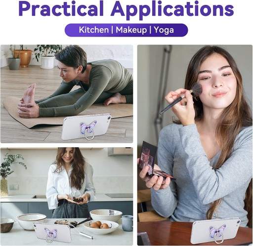 "-------------------------------- ZAPRASZAMY DO NASZEGO SKLEPU -----------------" Lista rzeczy do spakowania: 1 x uroczy uchwyt na telefon w kształcie motyla Specyfikacja: Materiał: stop aluminium Kolor: niebieski, fioletowy, różowy Rozmiar motyla: 1,65 x 1,5 cala/4,2 x 3,8 cm Rozmiar zapięcia na palec: 1,18 x 1,06 cala/3 x 2,7 cm Cechy: Mocny samoprzylepny: