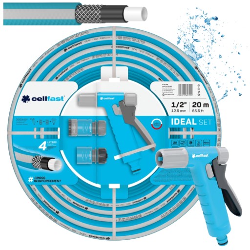 НАБОР ДЛЯ ОПРЫСКИВАНИЯ САДОВЫЙ ШЛАНГ 1/2 ДЮЙМА, 20 М ДОЖДЕВАТЕЛЬНЫЙ ПИСТОЛЕТ CELLFAST
