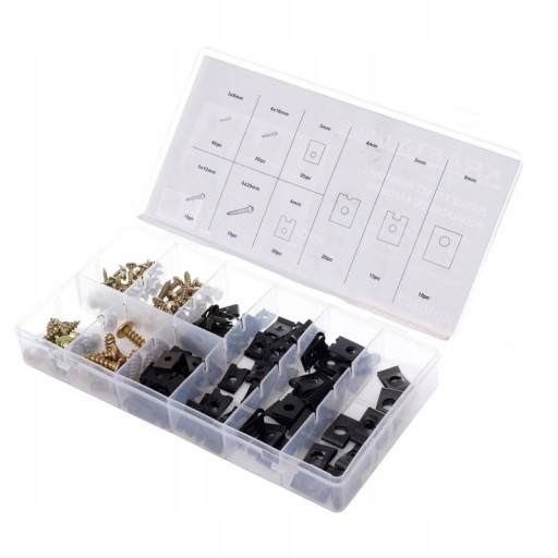 Zestaw zawiera szeroki wybór rozmiarów wkrętów i podkładek, co czyni go uniwersalnym narzędziem w warsztacie każdego miłośnika samochodów. Niezależnie od tego, czy pracujesz nad karoserią, montujesz dodatkowe akcesoria czy też dokonujesz drobnych napraw, ten zestaw zapewnia niezbędne elementy mocujące, które spełnią Twoje oczekiwania.