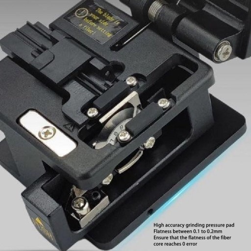 5. WIELE ZALET: Nasza przecinarka światłowodowa oferuje również takie funkcje, jak wysoka dokładność, stabilne kąty, automatyczny powrót ostrza, płynna i bezproblemowa praca, cięcie kabli światłowodowych bez konieczności zmiany osprzętu szczelinowego lub ustawień długości. Jest łatwy w demontażu i obsłudze, a także zawiera pojemnik na odpady włókienne, co zapewnia przyjazne dla środowiska użytkowanie.