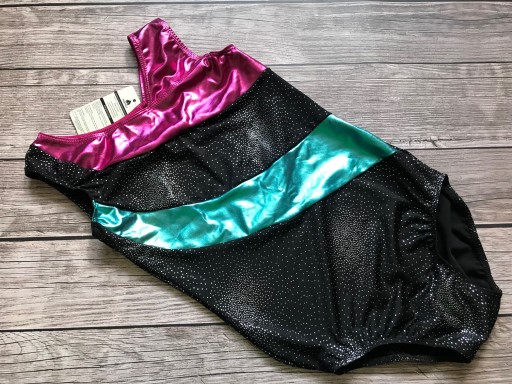 Profesjonalne dziewczęce body gimnastyczne z długim rękawkiem.