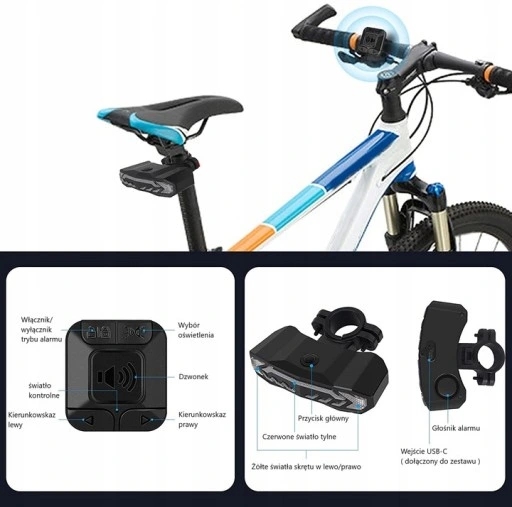 LAMPKA ROWEROWA KIERUNKOWSKAZ KLAKSON ALARM 110dB
