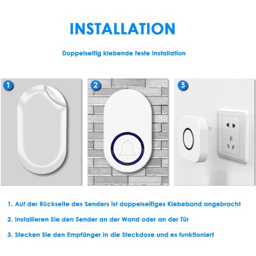 ✅ŁATWY W INSTALACJI:☎ Bezprzewodowy zestaw dzwonka do drzwi można łatwo zainstalować, mocując przycisk dzwonka do ściany bez okablowania i można go zainstalować w dowolnym miejscu w domu, ogrodzie, biurze lub skrzynce na listy.