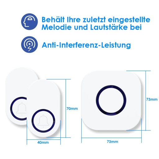 ✅FUNKCJA PAMIĘCI:☎ Bezprzewodowy dzwonek do drzwi zapamiętuje ostatnio używaną melodię i ustawienie głośności w przypadku przerwy w zasilaniu; nie ma potrzeby ponownego ustawiania; zaprojektowany z myślą o szczególnie praktycznym i łatwym użytkowaniu dla jeszcze większej wygody.