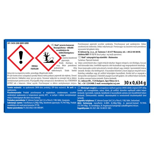 Raid wkładki na komary d elektrofumigatora 30 nocy