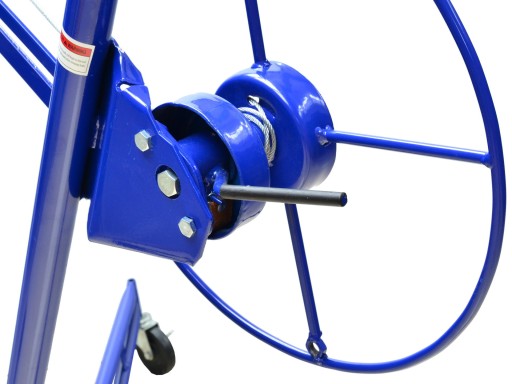 Stabilność podczas podnoszenia nawet dużych płyt gipsowych gwarantuje szeroki rozstaw kół zabezpieczonych blokadą.