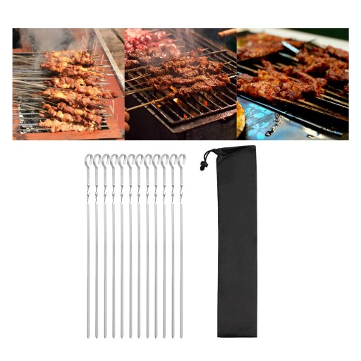 PATYCZKI KABOB ZE STALI NIERDZEWNEJ DO SPOŻYWCZOŚCI: Premium 12-częściowe metalowe szaszłyki ze stali nierdzewnej, dobrze wypolerowane, grube i mocne. Załaduj większą wagę bez schylania się. Doskonałe szaszłyki do grilla ze stali nierdzewnej, które są odporne na ciepło i rdzę.