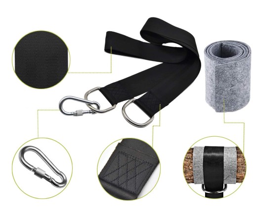 Bezpieczne mocowanie huśtawki dla Ciebie, wyposażone w grubsze maty ochronne na drzewo, aby zapobiec nagłemu pękaniu z powodu długotrwałego tarcia.