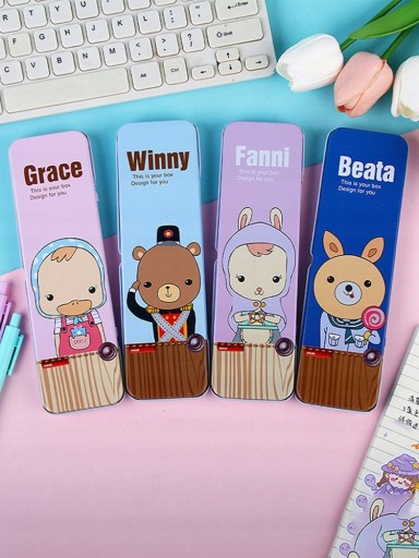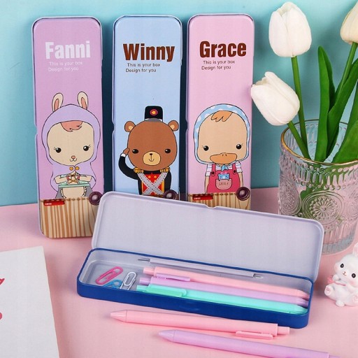 Металлический пенал, школьные канцелярские принадлежности, мультяшная банка