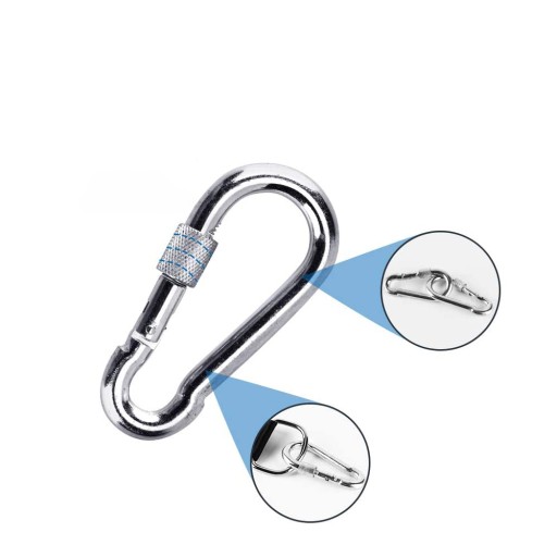 2 wytrzymałe karabinki z zestawu montażowego służą nie tylko do przykręcania, ale są również łatwe w użyciu, a także wyglądają stabilnie.