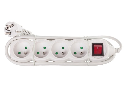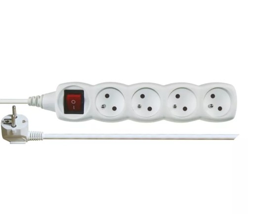 Przedłużacz 2 m / 4 gniazda / z wyłącznikiem / biały / PVC / 1 mm2 | EMOS