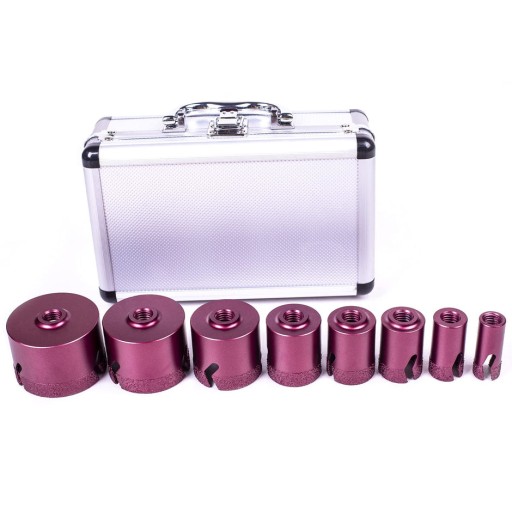 Gwint M14, średnica wiertła 20/25/32/35/40/50/60/68 mm. Nadaje się do większości szlifierek kątowych Zapakowane w aluminiowe pudełko, łatwe do przechowywania.