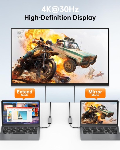 - Koncentrator NOVOO pozwala na odbicie lustrzane lub rozszerzenie laptopa na telewizor HD, monitor lub projektor o rozdzielczości do 4K UHD (3840x2160@30Hz).