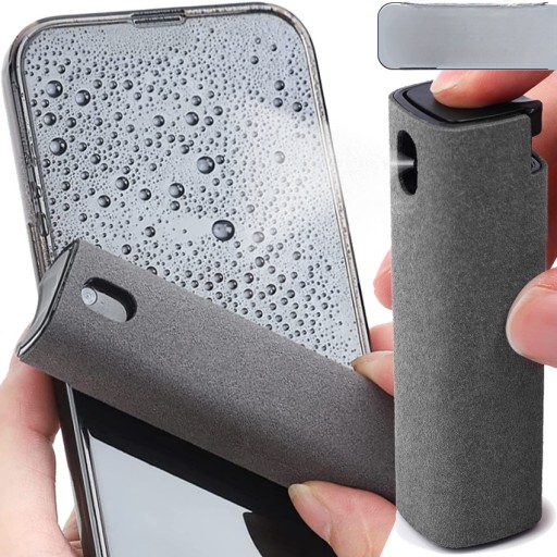 Niezwykle przydatny gadżet który doskonale usuwa brudne plamy z powierzchni ekranu. Wyposażony w dozownik ze sprayem oraz specjalną powierzchnię czyszczącą. Możliwość ponownego napełnienia płynem przedłuża jego żywotność.